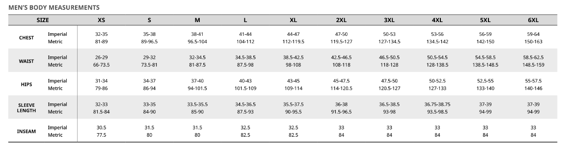 Grandeur : Small à 3XL